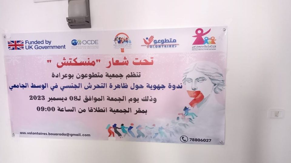 في اطار مشروع « منسكتش » وتزامنا مع حملة 16 يوم لمناهظة العنف ضد المرأة نظمت جمعية متطوعون بدعم من منظمة التعاون الافتصادي والتنمية OCDEيوم الجمعةLire la suite »ندوة الجهوية لمناقشة ظاهرة التحرش الجنسي في الوسط الجامعي .